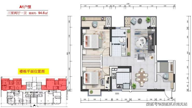 楼栋布局:6栋住宅(1-3栋11层,4-6栋17层)
