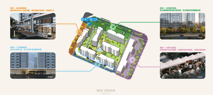 秉持一体化城市生活理念,红线外整合地铁、公园、商业、文创等资源,以四条街区链接社区与城市,类TOD式零换乘归家,打造约800㎡商业街区,凝萃城市烟火。