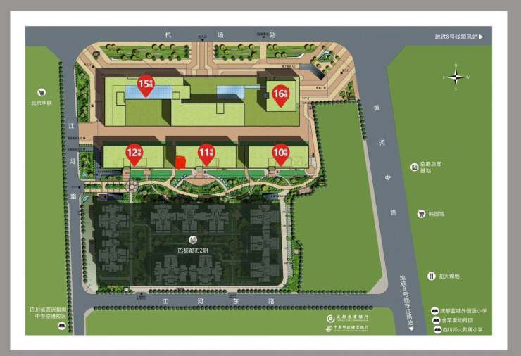2、强交通:双地铁+立体交通网络,驱车10分钟直达双流机场航站楼,永不误机