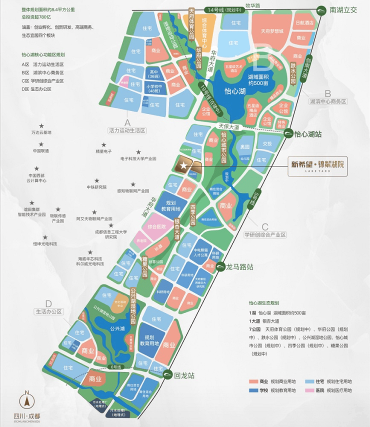 新希望锦粼湖院位于成都市双流区怡心湖板块,紧邻电子科大科技园,地理位置十分优越。项目总占地面积约88亩,容积率仅为2.0,确保了低密度的居住环境。整个项目由16栋建筑组成,总户数548户,旨在打造一个集产、商、住等城市功能为一体的复合型大盘。