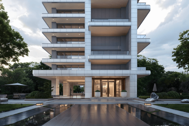 项目复刻其经典装饰主义,约10m挑高大堂,挑空拱门架构的恒温泳池、孔雀廊般的艺术展廊,层叠线条,艺术家真品装置等,让峯层生活从此同频华尔道夫