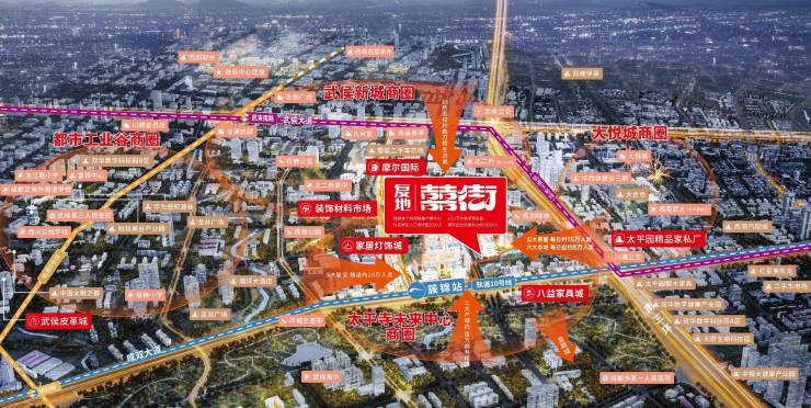 八益家具城,太平园家私,摩尔国际,灯具批发市场,家居装饰城,国际皮革城&国际鞋等专业市场汇集,人潮环绕。