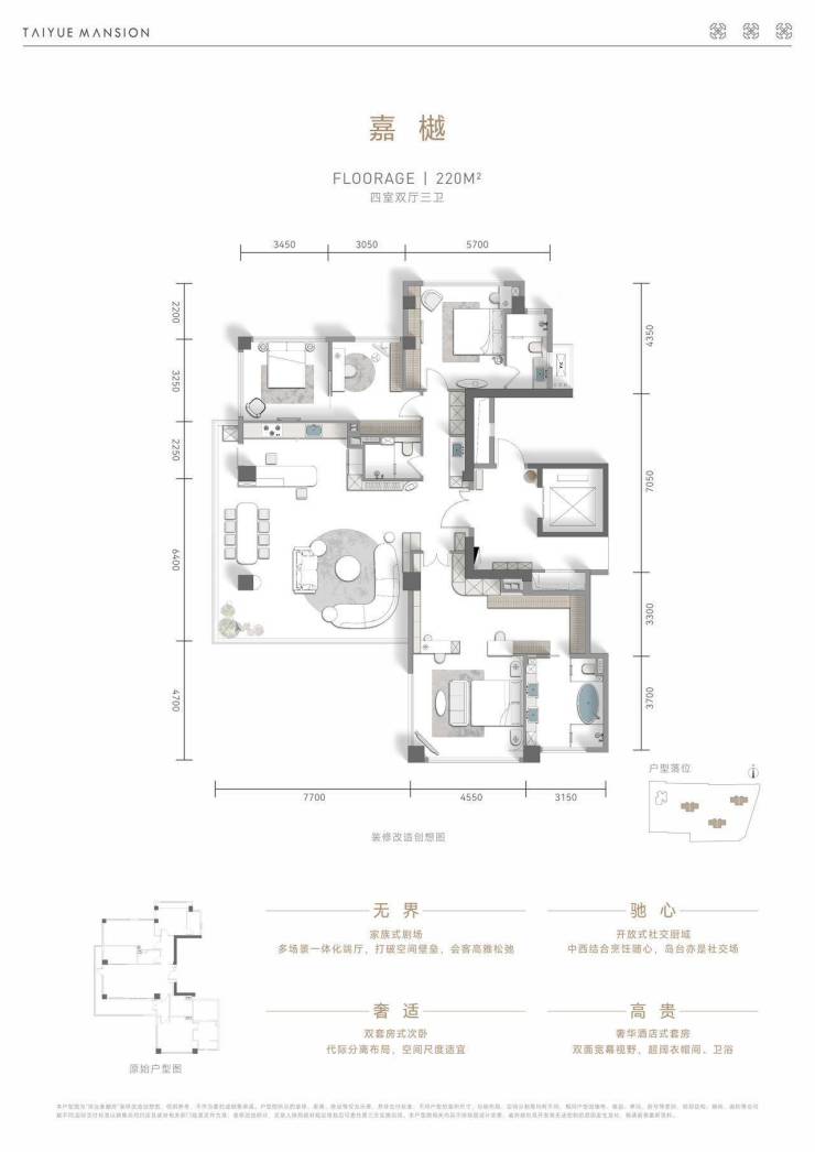 建面约220平套四