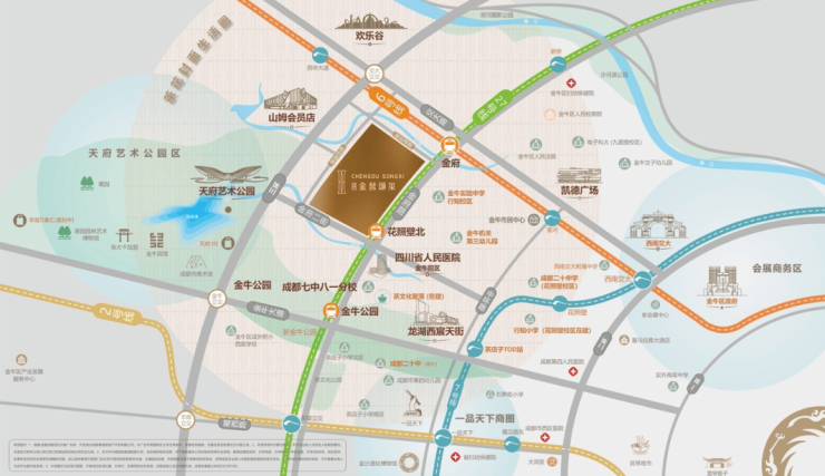 干亩绿境:1.5 公里范围内,新金牛公园、天府艺术公园、茶文化公园三大城市级公园