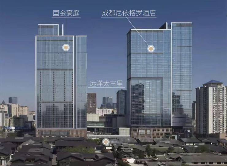 2007年,九龙仓以刷新当时成都土地成交纪录的72.4亿元,竞得成都红星路原成都百货82亩地块。这块土地并非纯商业地块,整个项目总体量约76万m,涵盖了21万m的购物中心和四栋塔楼,其中1、2号楼为超甲写字楼,3号楼为九龙仓旗下的尼依格罗酒店,4号楼就是服务式住宅公寓“国金豪庭”,也是本次入市销售的主角。