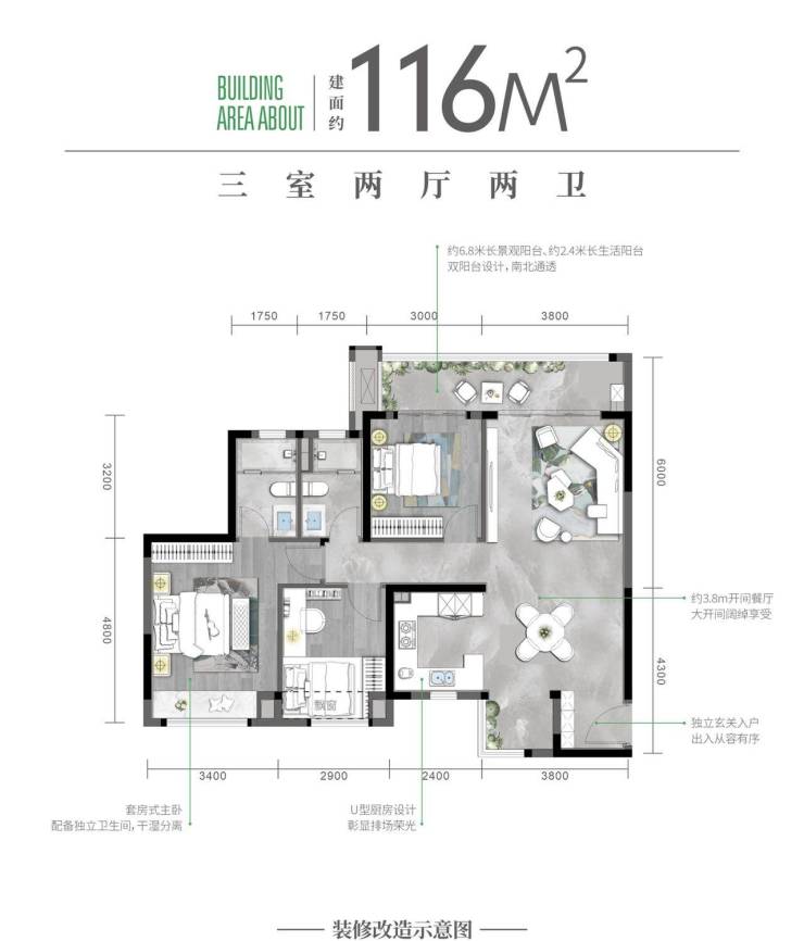 高层116㎡:超宽楼间距,户户超中庭,城西南北通透板式中庭三房(待售:9号地块2、3号楼)