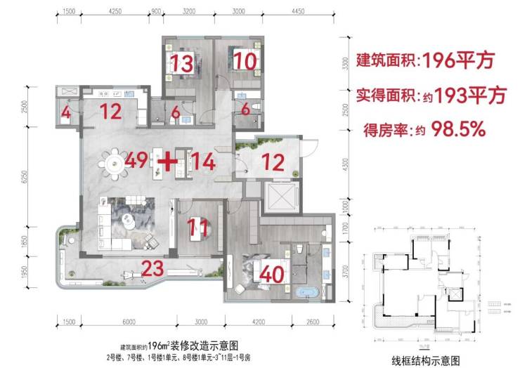 得房率:98%(含12㎡入户空间赠送)