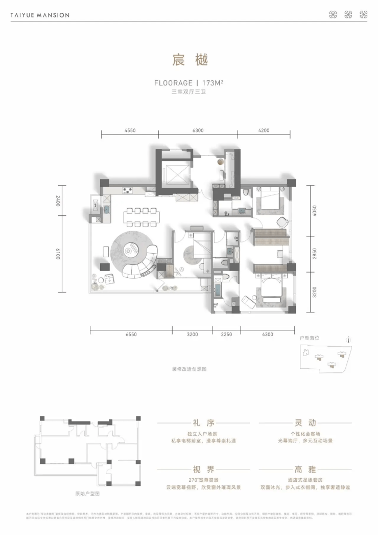 1. 建面约173㎡ 三室两厅三卫