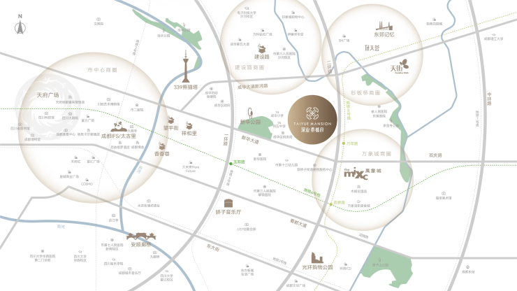 深业泰樾府坐落成华区万年场高端生活圈内,聚合立体交通、成熟商业、全龄教育、自然生态、高端医疗五大生活配套,板块定位成熟,居住氛围浓厚,日常起居、通勤出行、休闲消费皆可一站式满足。