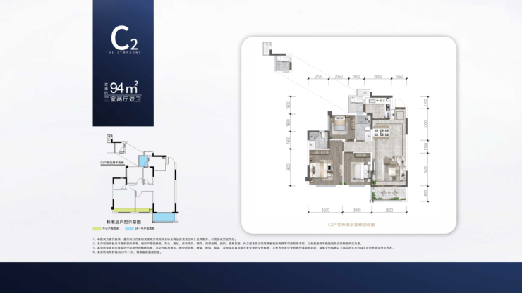 户型产品:建面约94—101㎡三室两厅双卫/建面约121平米四室两厅双卫