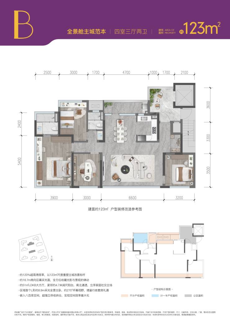 户型面积:约108-124㎡(建筑面积)