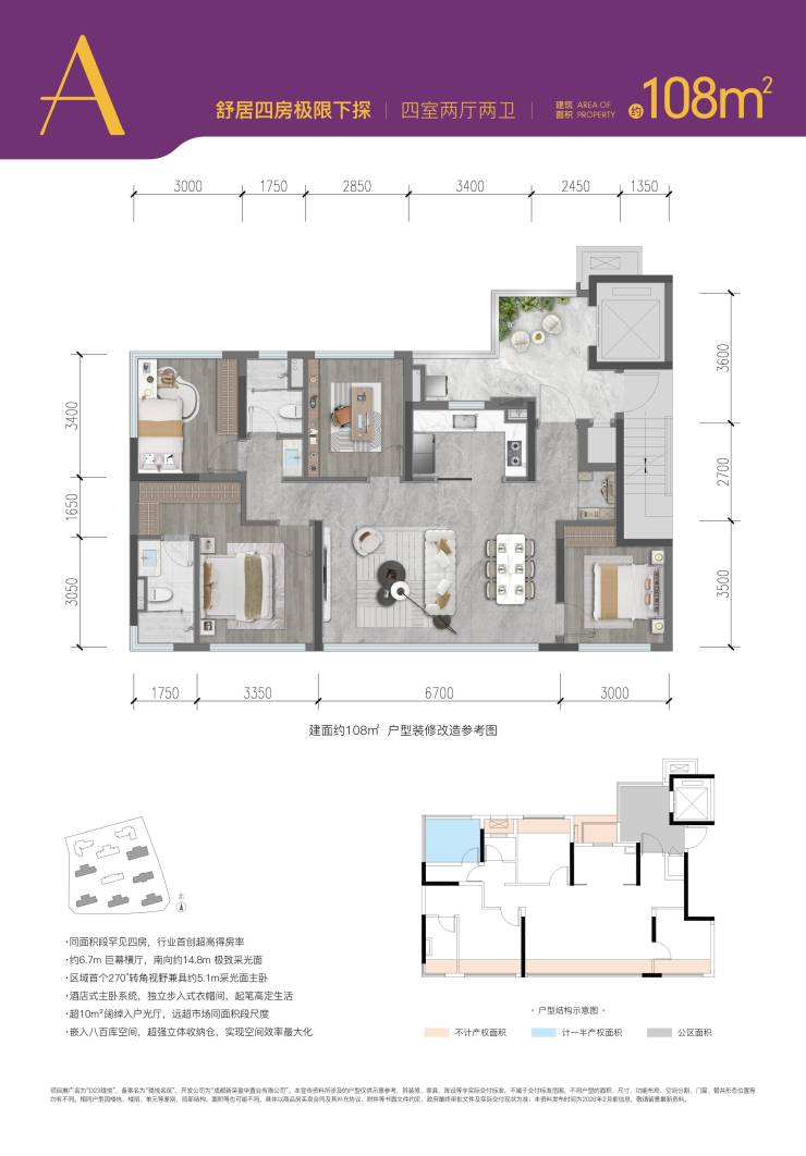 建面约108平套四