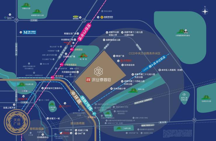 百亿商圈:天府国际动漫城、青龙广场、华润万家、泛悦城市广场等。