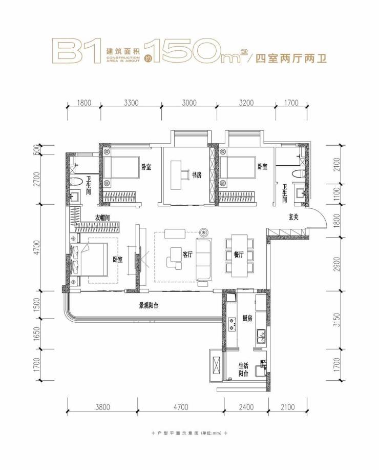 B1 、B3建筑面积约150㎡ 四室两厅两卫