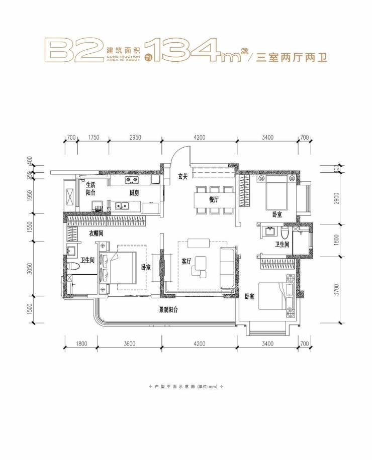 约4.2米宽境尺度客厅,贯连约7.8米南向景观阳台