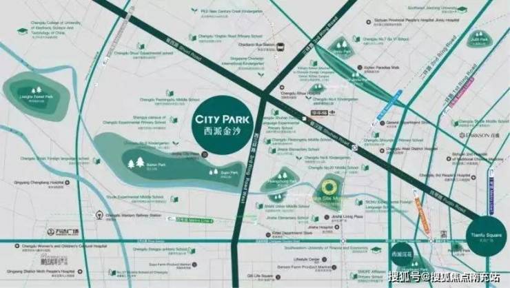 项目雄踞金沙板块核心区位,该区域作为城西传统的高端居住区,汇聚了众多品质住宅项目。周边配套成熟完善,坐拥1770亩百仁公园(部分景观已开放),教育资源配置尤为突出——毗邻成都市实验小学尚雅校区、成都市第六幼儿园及泡桐树中学等优质教育资源。