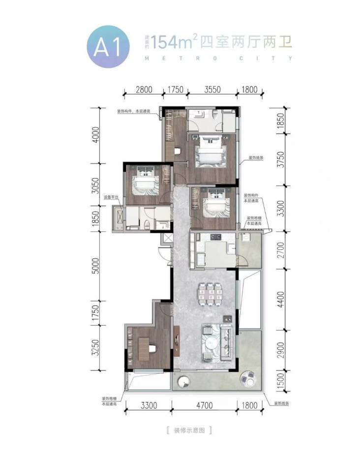7-9层纯板式洋房 154㎡四室两厅两卫(精装)