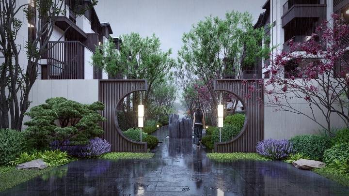 花园墅质低密建筑,一轴三脉六坊八雅景观带,打造巷院文化园林