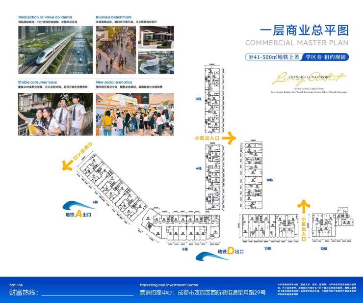 5分钟直达双流国际机场,10分钟接驳金融城,辐射金融城超100万高净值商务消费客群,商业价值腾飞。