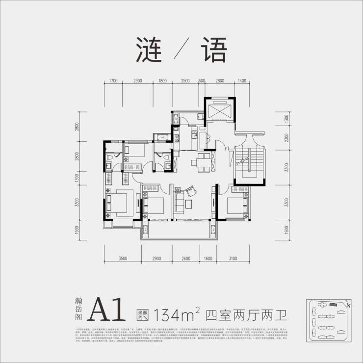 # 三期【户型品鉴】叠溪阁【沁语】推出区域内极为稀缺的明星小户型!此户型面积约 143㎡,拥有四室两厅两卫的空间布局。