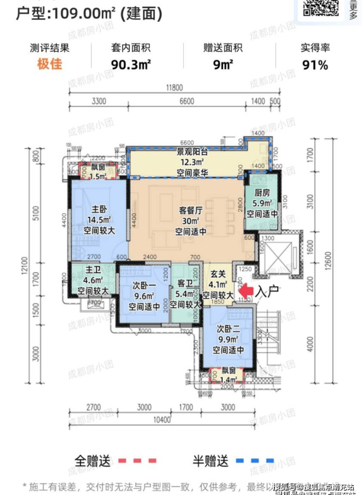 • 人性化设计:13.3㎡阳光玄关+8.2米转角阳台形成"第三会客厅"