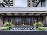 锦楠上院的建筑设计采用了现代轻奢的三段式设计,一楼采用米白色石材、灰色铝板和米白色仿石漆,使整个建筑看起来沉稳大气。中间部分以金属色线条搭配大面积蓝灰色low-e玻璃,打造出钻石光感立面。在建筑的转角处,用几何弧线代替传统的直角,实现了270度的开阔视野。顶部的弧线塔冠顶则使用了香槟色金属漆,整体材质的简洁感与立面造型的层次感完美融合。