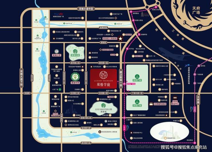 轨道交通:3号线双流广场站C出口(步行可达)教育体系:15年全龄教育链(含棠湖小学本部、棠湖中学、东升一中、双流中学等优质学府)