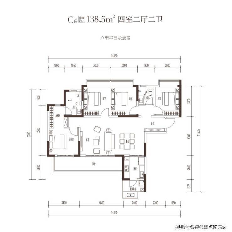 高层在售户型图:126平 四室二厅二卫