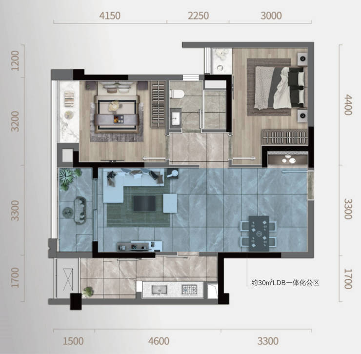 约30㎡ LDB一体化公区,拥有60㎡的空间感受